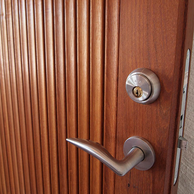 | Insida | Invändigt har ytterdörren en slät yta av fanér |