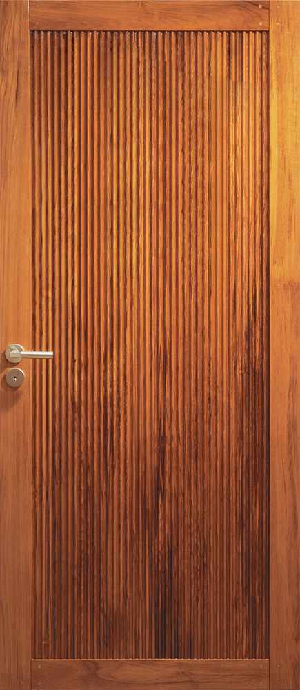 Florö är en innerdörr med massiv ram, d.v.s. samma träslag rakt igenom hela ramen. Dörrens fyllning består av massiv sinuspanel på in- och utsida.