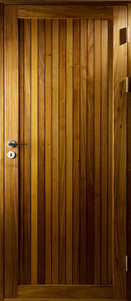Hamnerö är en innerdörr med massiv teak-ram, dvs. teak rakt igenom hela ramen. Dörrens fyllning består av en nåtad däcksribb på in- och utsida, samt ett intarsia (i massiv ask och valnöt) i form av en vacker kompassros på utsidan.