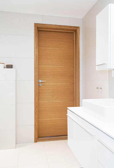 | Insida | Invändigt har ytterdörren en slät yta av fanér |