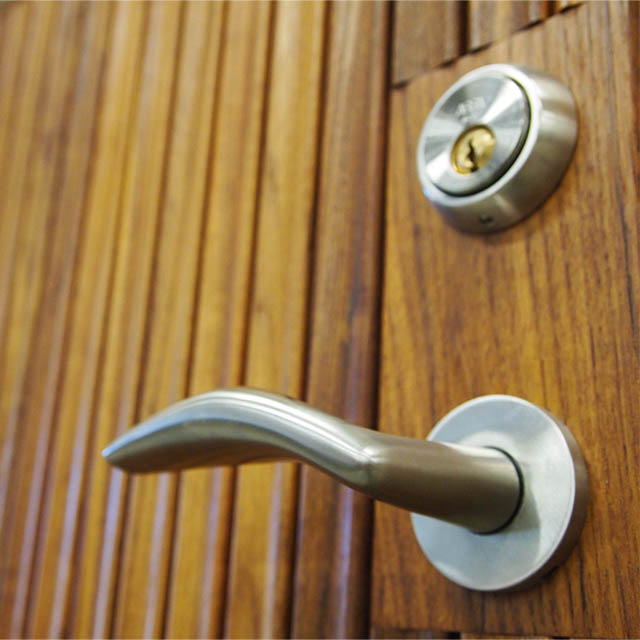 | Insida | Invändigt har ytterdörren en slät yta av fanér |