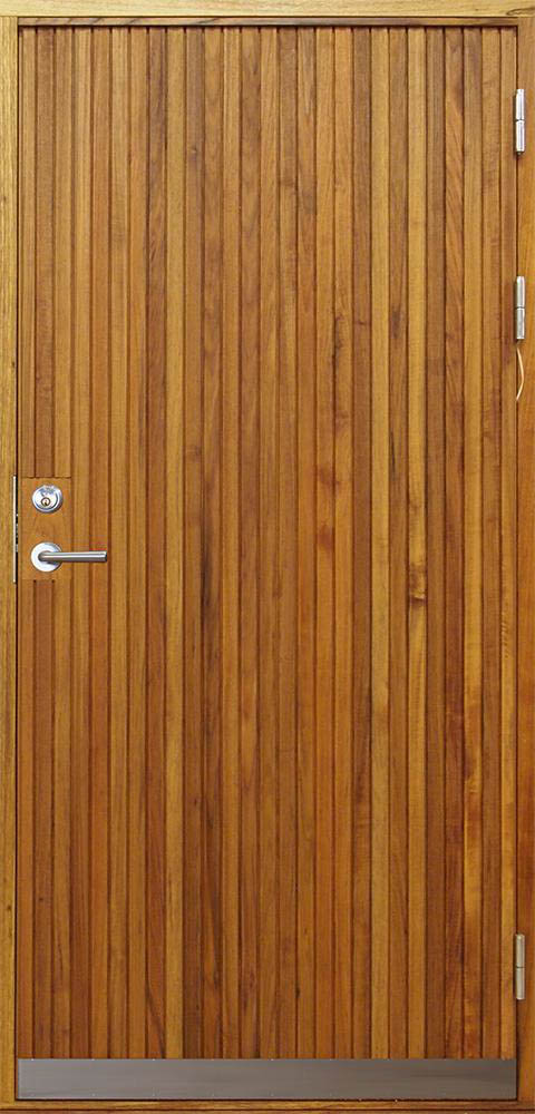 Kalvö är en ytterdörr med stående massiv karosseripanel i typisk 30-tals stil. Invändigt har dörren en slät yta av fanér. Behöver du hjälp med att välja eller kundanpassa din ytterdörr? Kontakta oss gärna så hjälper vi dig att ta fram ett förslag som passar dig.