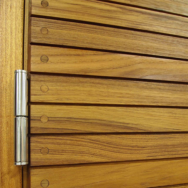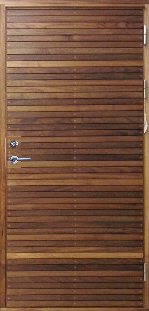 Resö är en ytterdörr med liggande eller stående massiv panel där panelerna är sorterade, matchade och skruvade för hand. Skruvhålen är sedan tätade med en träplugg som huggs av med stämjärn och putsas jämnt med panelen. Invändigt har dörren en slät yta av fanér.
